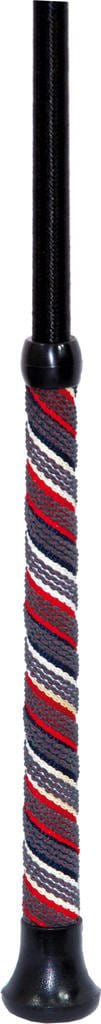 Bat skokowy York Reflexy ozdobiony odblaskową nicią. Bat ma wygodny uchwyt i pasek na nadgarstek. Rączka zakończona głową konia. Długość 65 cm lub 75 cm.