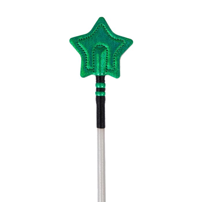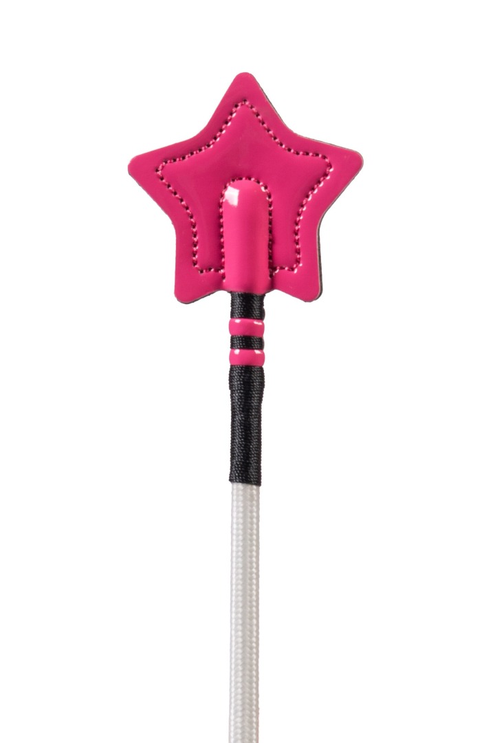 Bat skokowy HKM Maui z ozdobną rączką i patką w kształcie gwiazdki. Wykonany w wytrzymałego włókna szklanego i zakończony chromowanym okuciem.