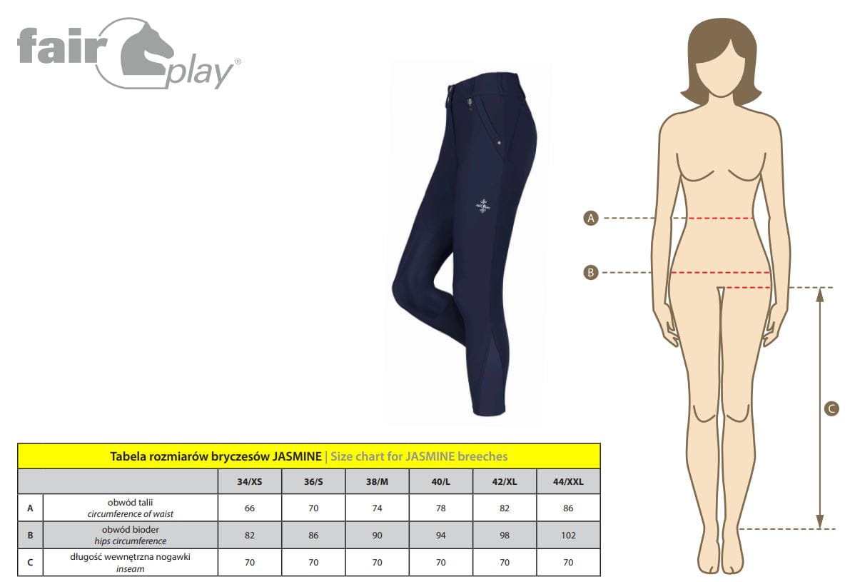 Wyposażone w dwie obszerne skośne przednie kieszenie oraz imitację tylnych kieszeni, bryczesy Fair Play Jasmine są nie tylko praktyczne, ale także stylowe. Wysoka, dopasowana talia ze szlufkami pozwala na idealne wyregulowanie i zapewnienie komfortu noszenia.