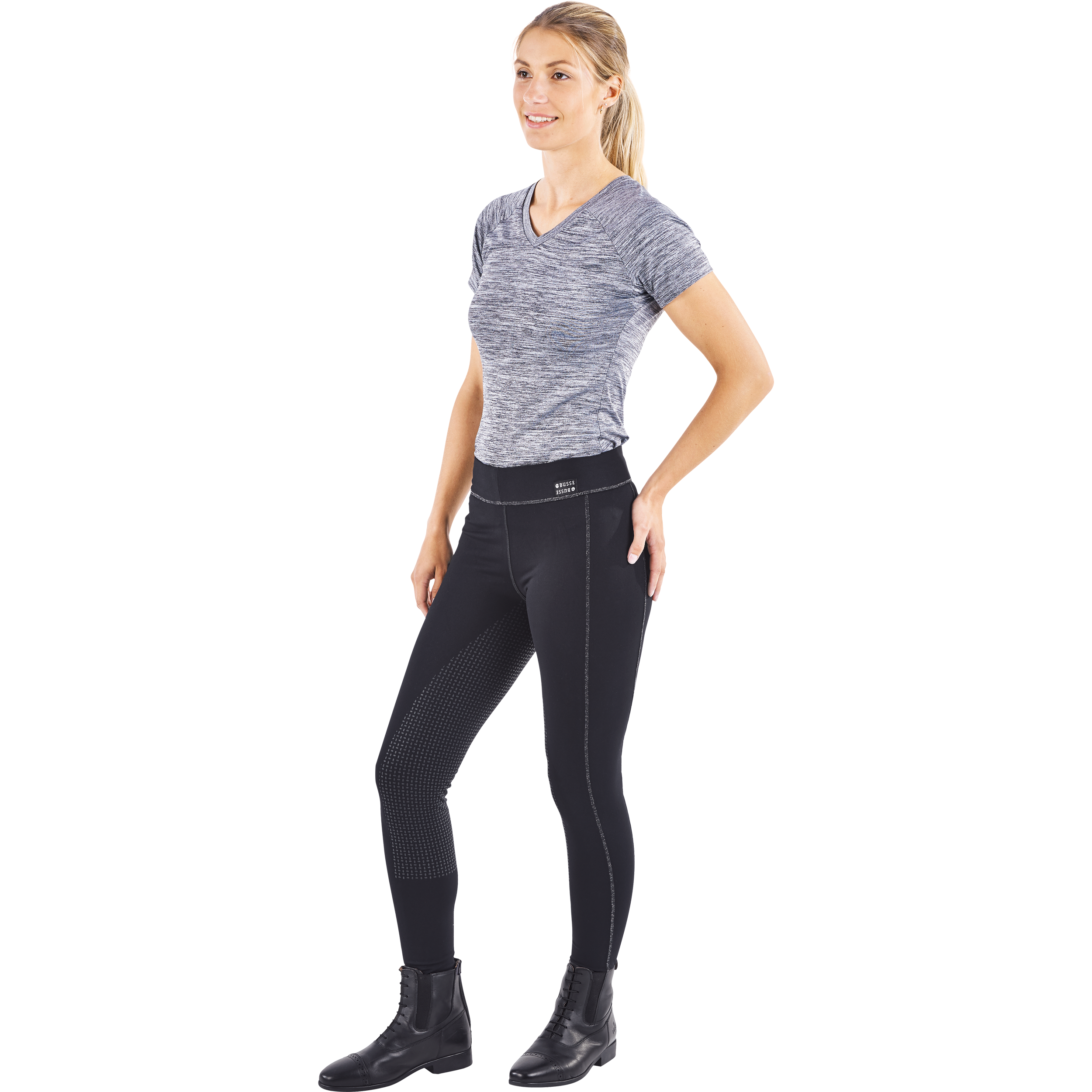 Szeroki, elastyczny pas oraz elastyczne końce nogawek trzymają legginsy na miejscu.