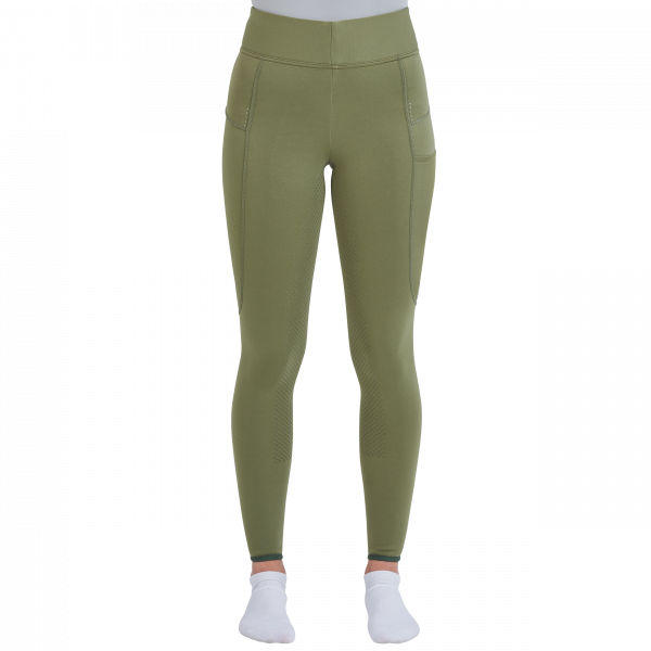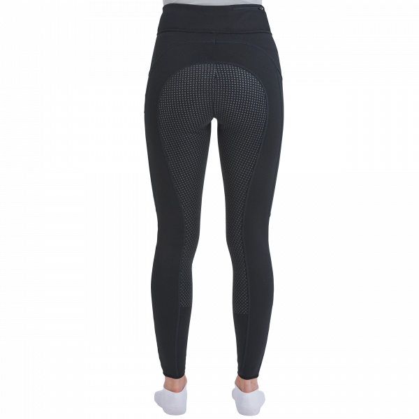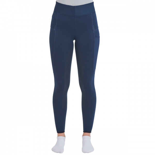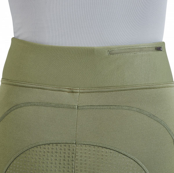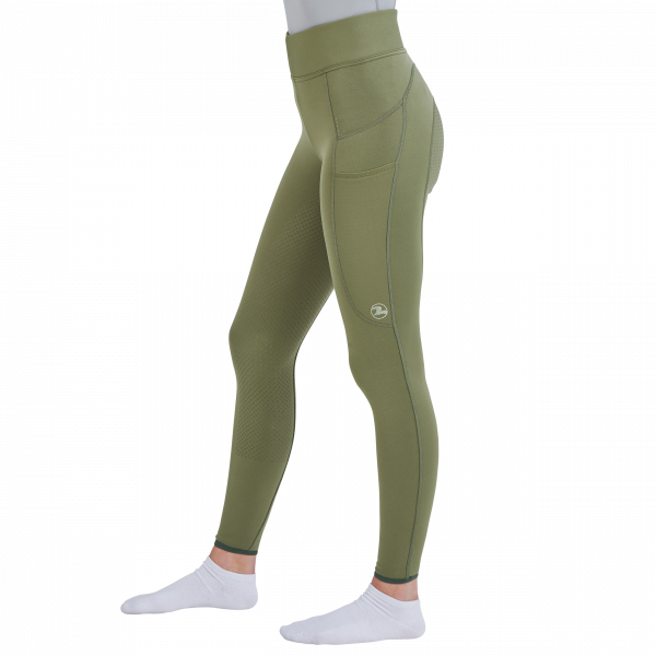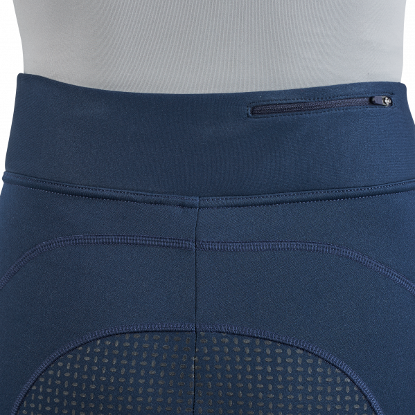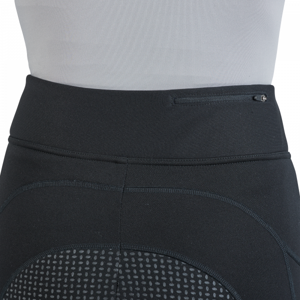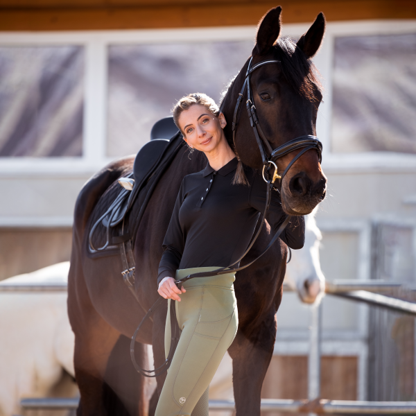 - Klasyczny krój i elastyczność: Szeroka, elastyczna taśma w pasie z silikonowym logo nadrukowanym wewnątrz zapewnia lepsze trzymanie bryczesów na miejscu podczas ruchu, a elastyczne końcówki nogawek gwarantują idealne dopasowanie do butów jeździeckich.