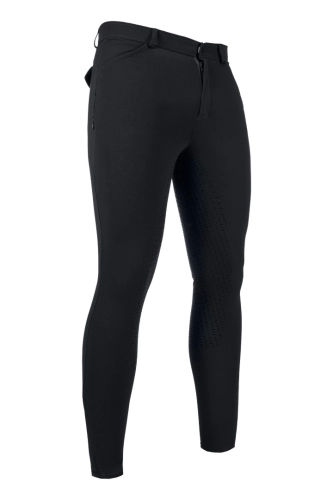 Bryczesy męskie HKM James to doskonały wybór dla jeźdźców, którzy oczekują wygody, praktyczności i sportowego designu. Wykonane z oddychającego, elastycznego materiału zapewniają pełną swobodę ruchów, a dzięki dopasowanemu krojowi idealnie układają się na sylwetce.Wyposażone w pełny silikonowy lej , gwarantują pewne oparcie i stabilność w siodle. Elastyczne zakończenia nogawek ułatwiają zakładanie i komfort noszenia pod oficerki lub sztyblety. Dodatkowe kieszenie – w tym kieszonka na telefon zapinana na suwak – czynią je niezwykle funkcjonalnym modelem dla każdego jeźdźca.