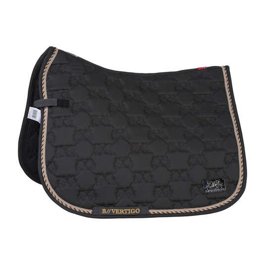 Luksusowy czaprak z oryginalnym pikowaniem B Vertigo Monaco. Ozdobiony kontrastującą lamówką złożoną z trzech rzędów sznurka. Anatomicznie profilowana linia grzbietu. Powłoka odporna na kurz sprawia, że dłużej zachowuje idealny wygląd. Pikowany w logo producenta. Eleganckie, ponadczasowe kolory. Mała, metalowa blaszka z logo.