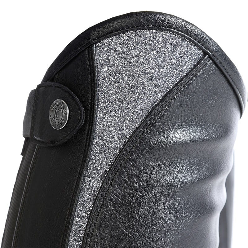 Zdobione z boku brokatową wstawką, która sprawia, że noga jeźdźca wygląda smuklej.