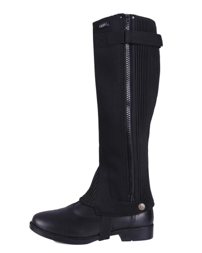 Wysokiej jakości czapsy dziecięce. Klasyczny krój. Wykonane z ekologicznego zamszu. Materiał przeciwpoślizgowy, zapewnia dobrą przyczepność. Bardzo elastyczne. Zapinane z boku na zamek błyskawiczny z zapięciem na rzep. Patki z zatrzaskami w kontrastowym kolorze. Szeroka gumowa wstawka wzdłuż suwaka zapewnia optymalne dopasowanie. Od wewnątrz podszyte gładką tkaniną. Z elastyczną gumką pod stopą, wzmocnioną kawałkiem tkaniny. Materiał: 60% nylon, 40% poliester.