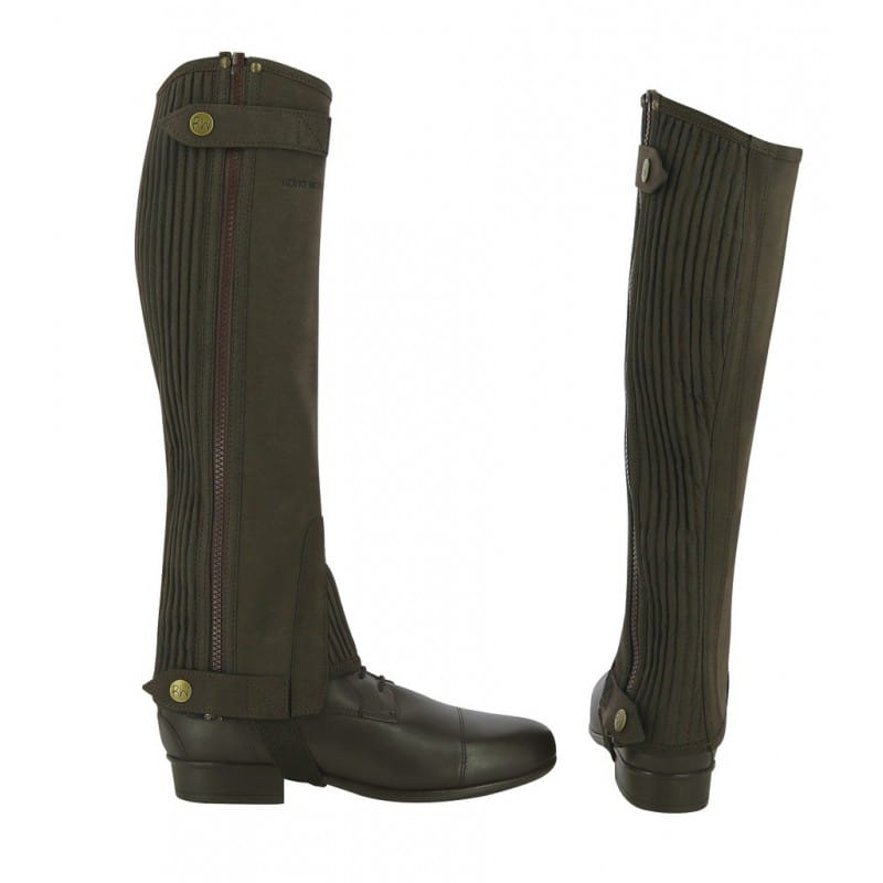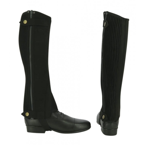 Wysokiej jakości czapsy Riding World Amara Adult. Profilowany krój. Wykonane z Amary (bardzo mocna, cienka, elastyczna i zmywalna tkanina syntetyczna). Zapinane na zamek błyskawiczny z dodatkowym przyciskiem na górze i na dole. Elastyczna wstawka z tyłu łydki. Mocne gumki do przełożenia pod podeszwą buta. Skład: 65% nylon i 35% poliuretan.