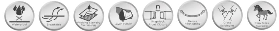 - Technologia Stay-dry: Wyściółka Stay-dry skutecznie odprowadza wilgoć, szybko osuszając konia i pozostając suchą przy jego skórze, co zapobiega przeziębieniom i zapewnia komfort.