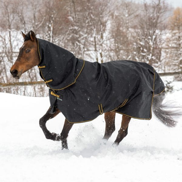 Zalety przeciwdeszczowej derki padokowej z kapturem Bucas Irish Neck dla koni: