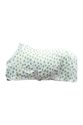 Derka HKM Naples to doskonały wybór na ciepłe, letnie dni, zapewniająca skuteczną ochronę koni przed muchami i owadami. Dzięki regulowanym i odpinanym pasom krzyżowym derka gwarantuje idealne dopasowanie i wygodę dla konia podczas odpoczynku świeżym powietrzu i w stajni. Modny nadruk z awokado wyróżnia konia na tle innych.
