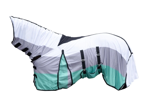 Derka siatkowa z kapturem dla konia – kompleksowa ochrona przed owadami.