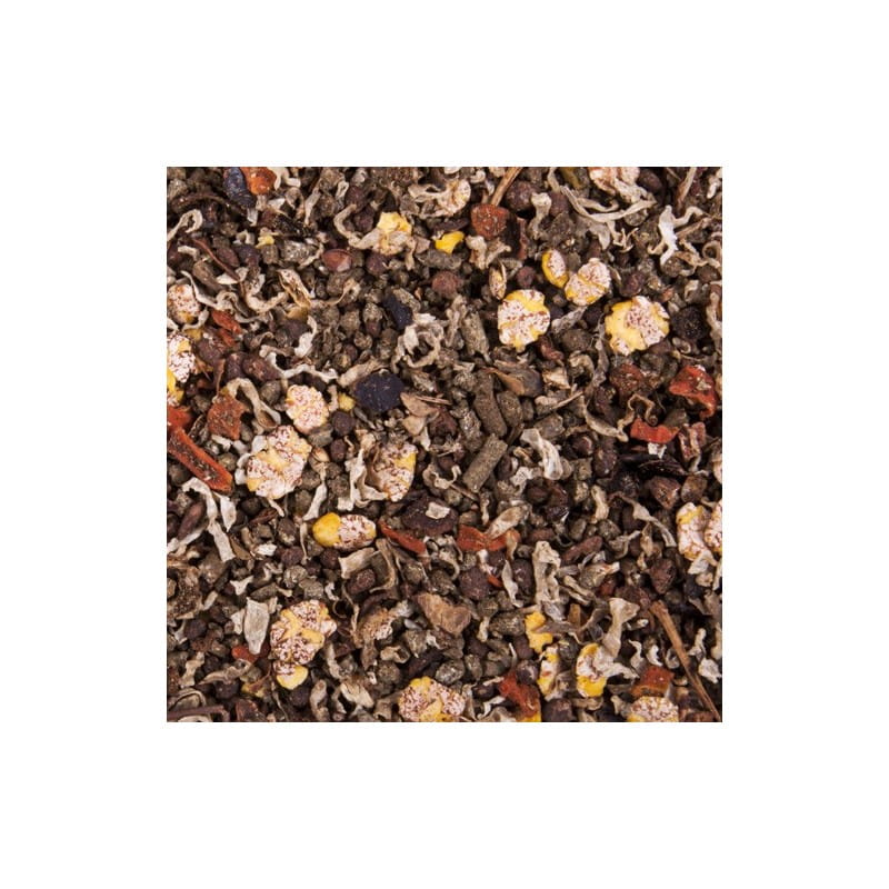 Wytłoki jabłkowe, łuska z nasion słonecznika, łuska z nasion lnu, pulpa z cykorii, płatki łubinu słodkiego, chleb świętojański, lucerna, sok jabłkowy, poekstrakcyjna śruta słonecznikowa, płatki marchwi, gliceryna, olej słonecznikowy
