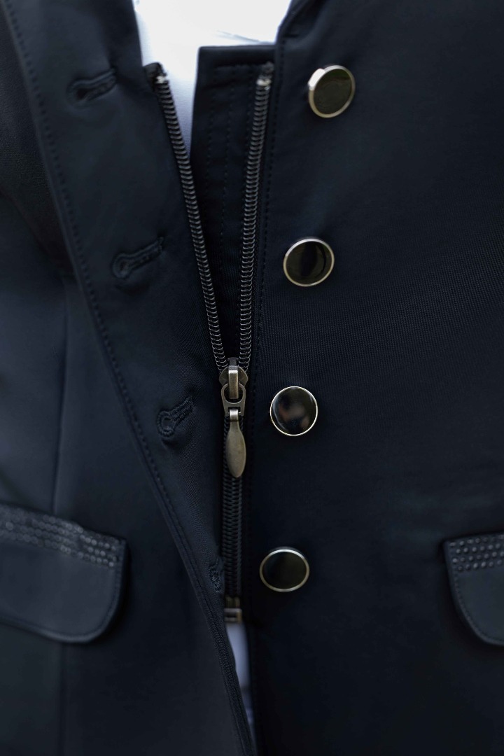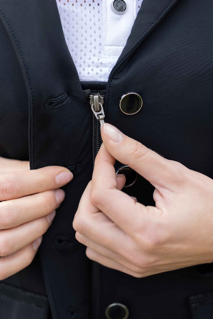 Dzięki modnemu krojowi, wysokiej jakości materiałom i subtelnym zdobieniom, frak Lauria Garrelli Amalfi to doskonały wybór dla młodych jeźdźców startujących w zawodach. Łatwość pielęgnacji, wygoda i elegancja sprawiają, że jest to idealna marynarka konkursowa dla każdej młodej amazonki!