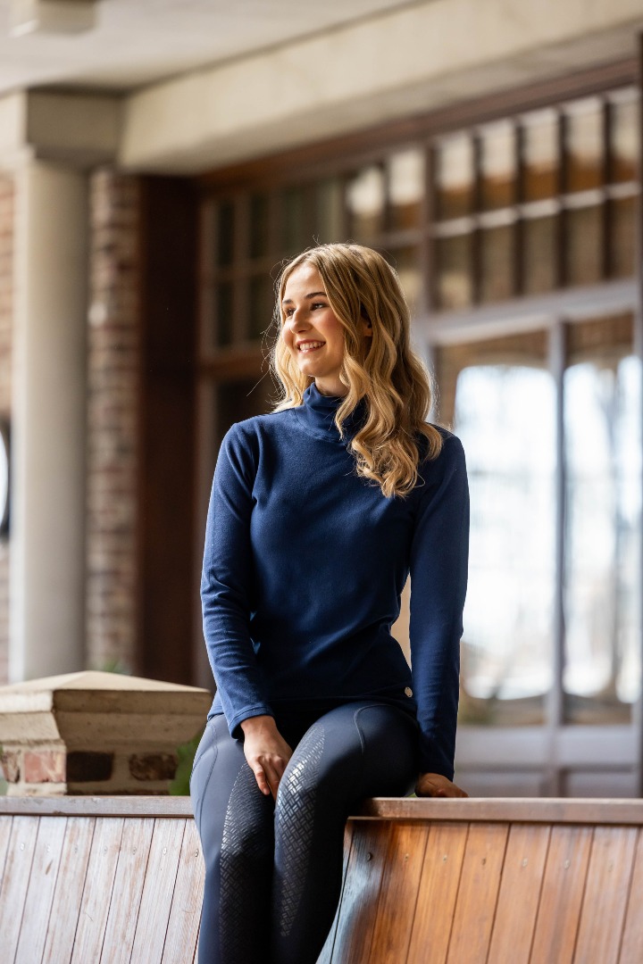 Golf HKM Eva został stworzony z myślą o jeźdźcach, którzy cenią sobie wygodę, funkcjonalność i komfort termiczny. Wykonany z niezwykle przyjemnego dla ciała, miękkiego i elastycznego polaru. Materiał ten zapewnia wysoki stopień utrzymywania ciepła oraz swobodę ruchów. Klasyczny krój z wysokim kołnierzem doskonale chroni szyję przed zimnem, a elastyczna tkanina dopasowuje się do sylwetki.
