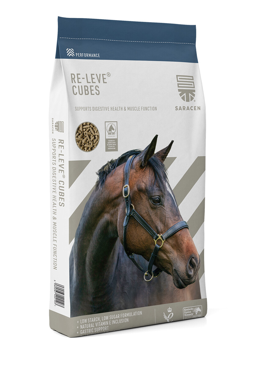 Mieszanka paszowa Saracen RE-LEVE-CUBES w formie granulatu o niskiej zawartości skrobi (9%) i cukru (4,5%), opracowane specjalnie w celu wspierania zdrowego przewodu pokarmowego i i utrzymania prawidłowej funkcji mięśni u wszystkich koni. RE-LEVE-CUBES są opracowane na bazie wysoce strawnych włókien „Super Fibres” i oleju jako alternatywnych źródeł energii, co czyni je idealnymi dla koni podatnych na wrzody żołądka. Granulat zapewnia zbilansowaną dietę, wzbogacony o pełne spektrum witamin, chelatowanych minerałów i przeciwutleniaczy, w tym naturalną witaminę E, a także żywe kultury drożdży, aby wspierać optymalne zdrowie układu trawiennego. Granulat ma smak czarnej porzeczki, aby zachęcić do pobierania paszy najbardziej wybredne konie.