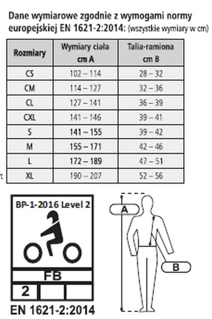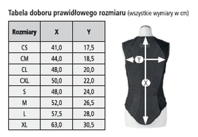 Ochronna część na plecach wykonana z grubej pianki PVC, przód natomiast z elastycznej, oddychającej siateczki dopasowującej się do sylwetki.