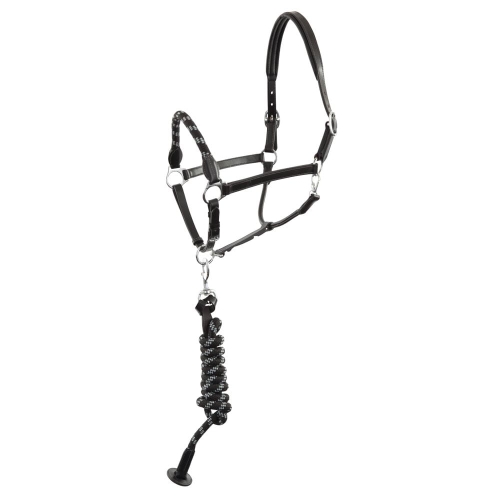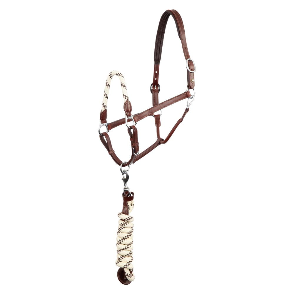 - kantar z uwiązem - bardzo elegancki zestaw - kantar wykonany ze skóry - miękko wyściełany anatomicznie profilowany pasek potyliczny - pasek nosowy wykonany z nylonowego sznureczka - 3-punktowa regulacja - zaokrąglone klamry - okucia wykonane z chromowanego mosiądzu - uwiąz z klasycznym karabińczykiem - posiada skórzane wstawki utrudniające wyślizgnięcie się z dłoni