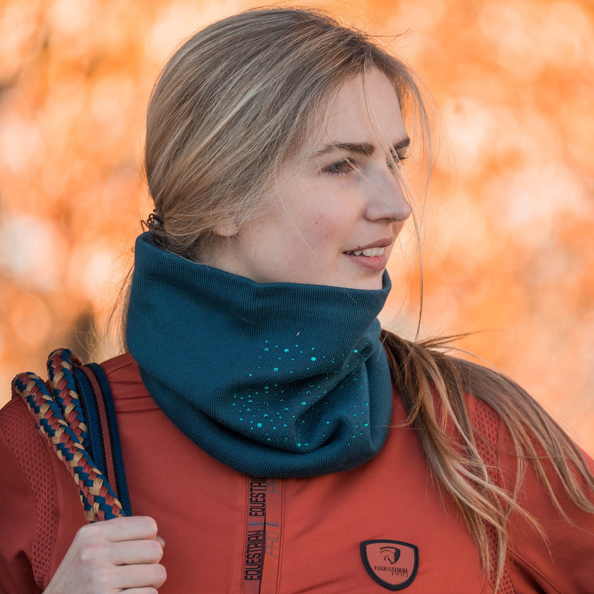 Komin HORKA Jade idealny na zimę. Klasyczna dzianinowy komin. Od spodu podszyty miękkim i ciepłym polarem. Szeroki, dzięki czemu dobrze chroni szyję. Z przodu ozdobiony aplikacją z błyszczących kryształków. Jeden rozmiar.