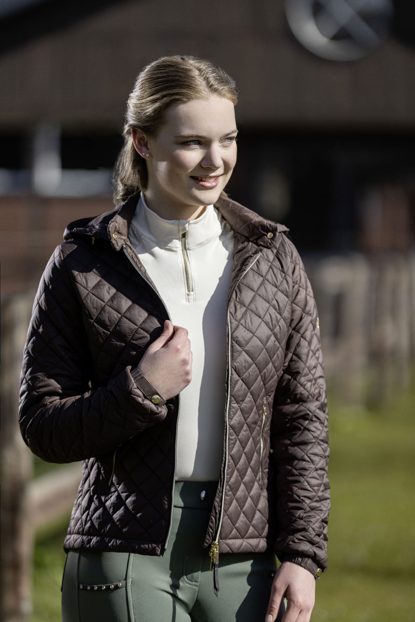 Wstawki z tkaniny przeplatanej brokatową nicią nadają jej eleganckiego wyglądu.