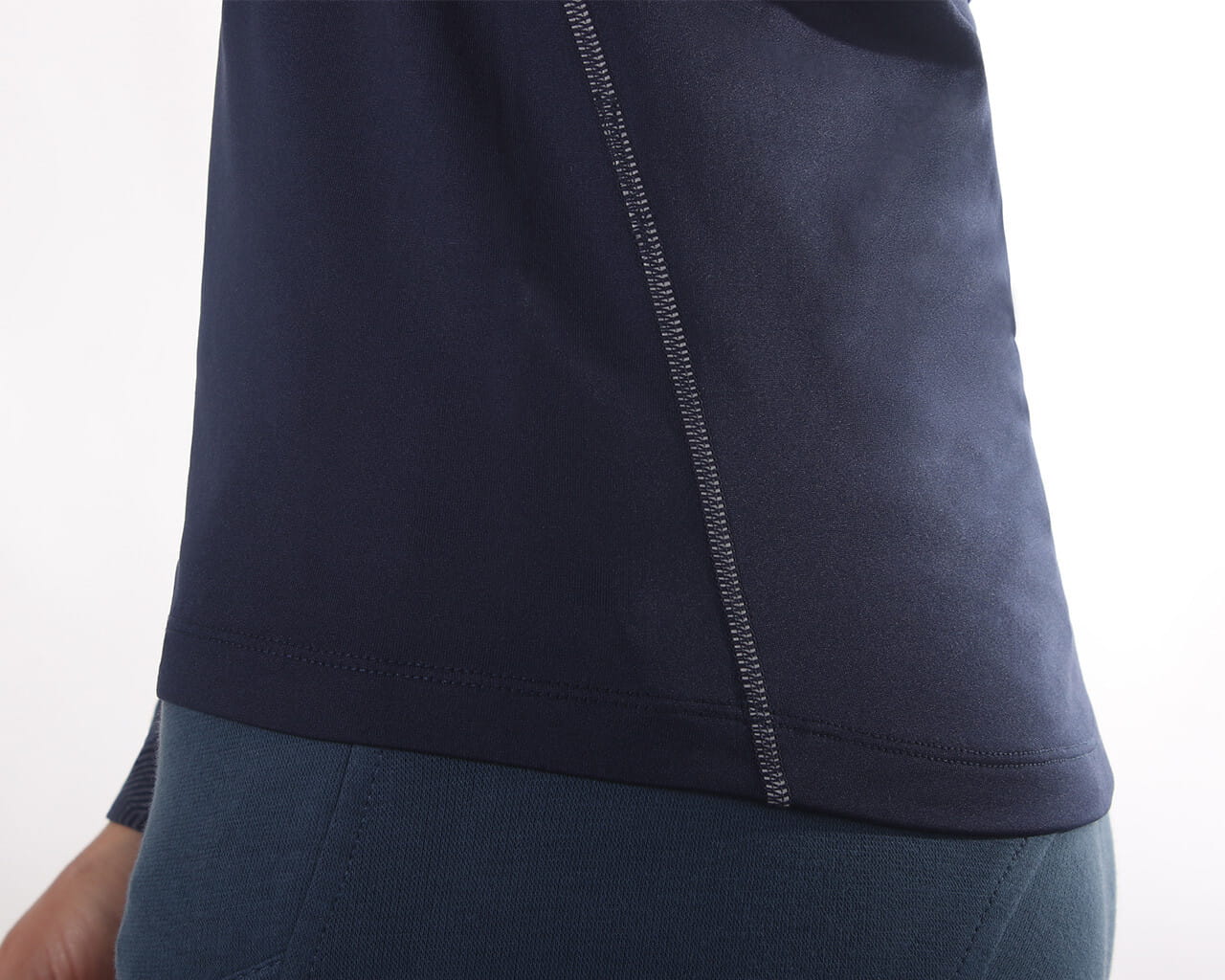 Odblaskowy pasek w bocznych szwach nadaje koszulce sportowy wygląd.