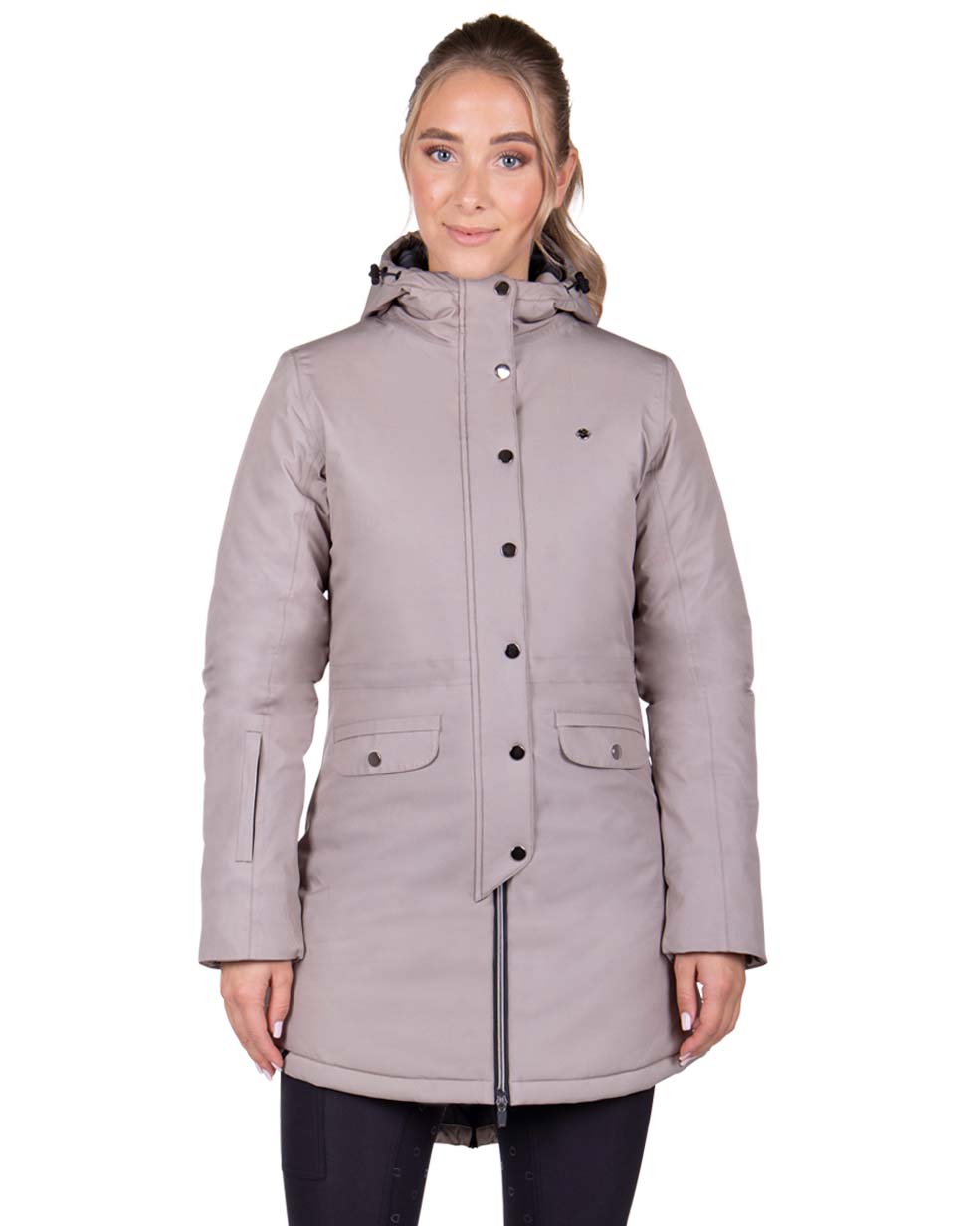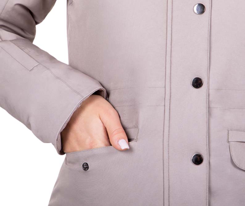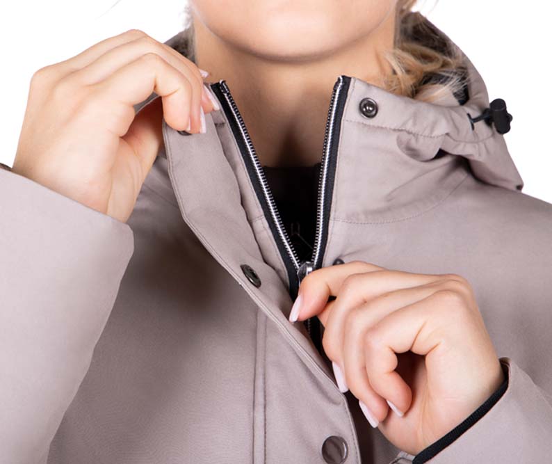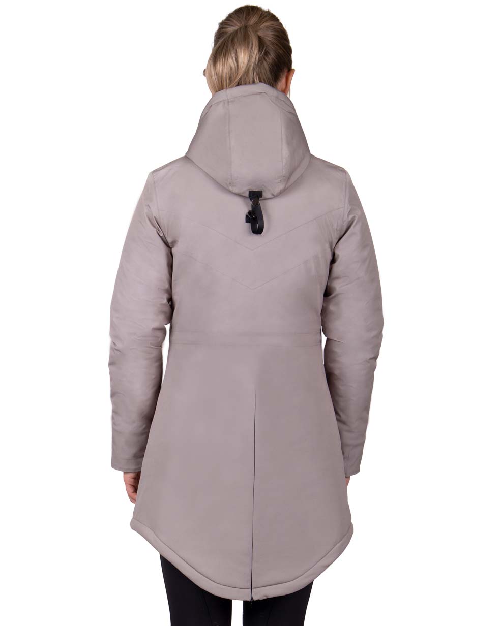 Kurtka zimowa o dłuższym kroju QHP Linde. Wykonana z oddychającego, wodoodpornego materiału. Dzięki rozpinanemu zamkowi z tyłu nadaje się również do jazdy. Dwukierunkowy zamek z przodu. Wyposażona w wiele kieszeni. Wodoodporność: 10000 mm/m2. Oddychalność: 300 ml/m na 24h. Wypełnienie: 180g.