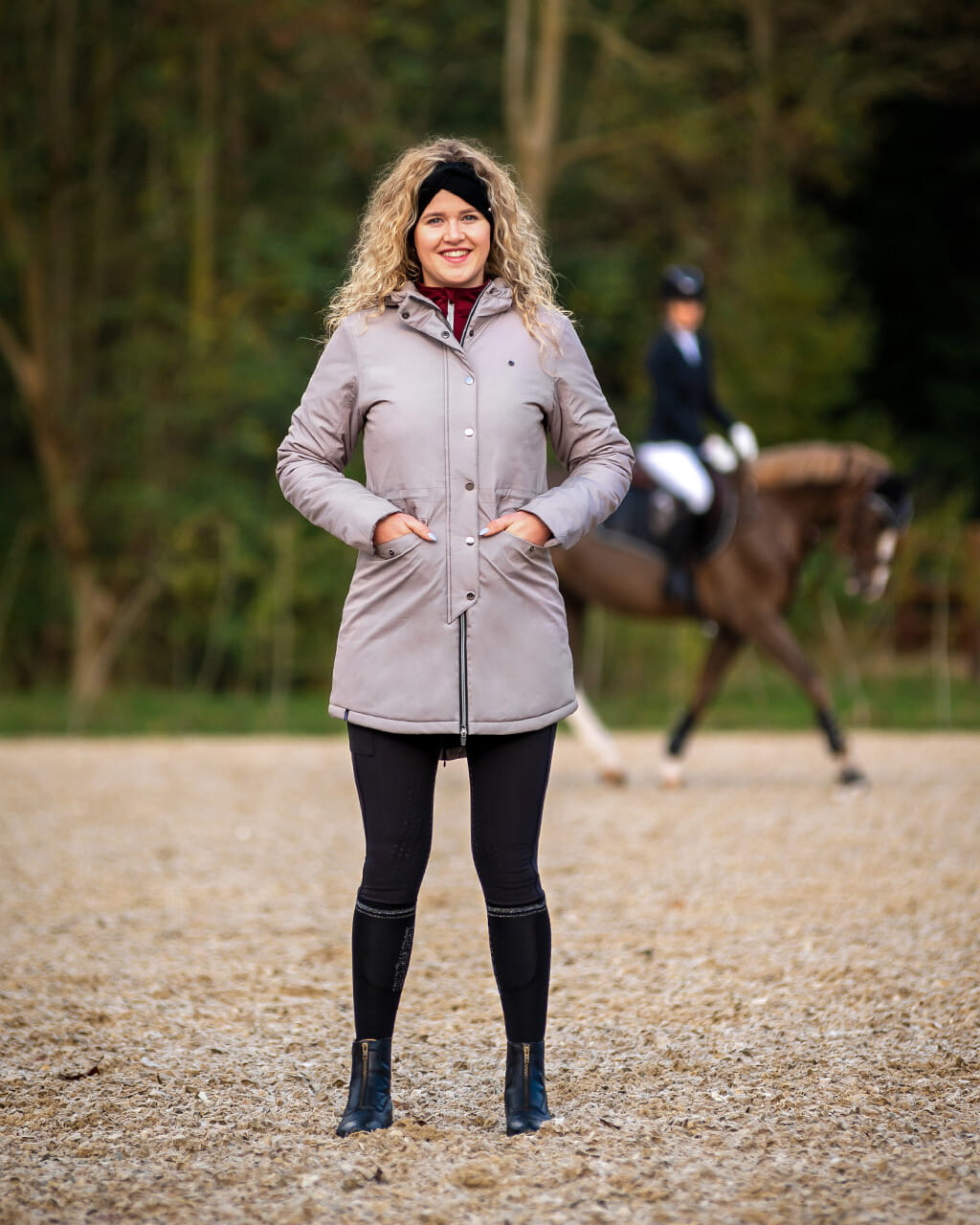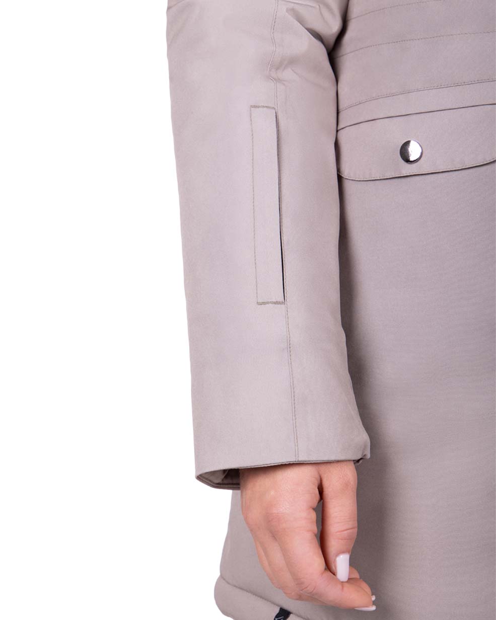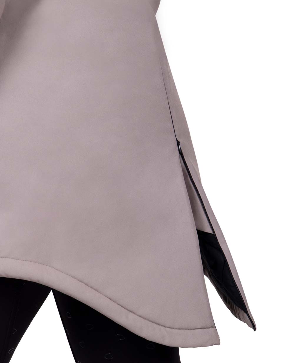 Kurtka zimowa o dłuższym kroju QHP Linde. Wykonana z oddychającego, wodoodpornego materiału. Dzięki rozpinanemu zamkowi z tyłu nadaje się również do jazdy. Dwukierunkowy zamek z przodu. Wyposażona w wiele kieszeni. Wodoodporność: 10000 mm/m2. Oddychalność: 300 ml/m na 24h. Wypełnienie: 180g.