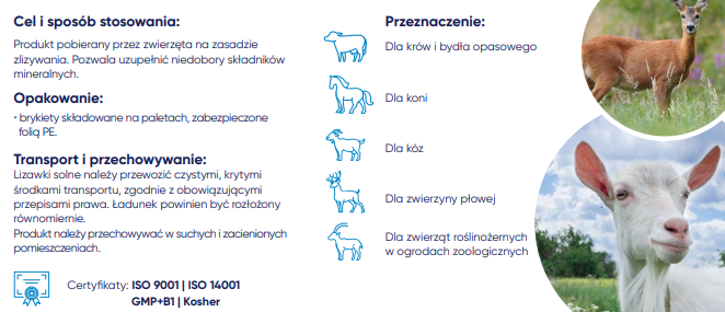 Lizawka dla koni LISAL CIECH stanowi źródło łatwo przyswajalnego sodu i chloru.