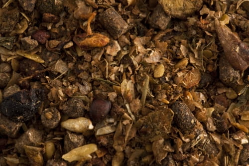 Skład: wytłoki z jabłek, kiełki kukurydzy, otręby pszenne, wysłodki buraczane, fosforan dwuwapniowy, syrop jabłkowy, sól morska, suszona trawa alpejska, mieszanina olei tłoczonych na zimno (olej lniany, olej słonecznikowy) 3,5%, płatki jęczmienne, algi morskie, zioła (pietruszka, mięta, kolendra, koper, oset, majeranek) 3,5%, marchew, mieszanina nasion (siemię lniane, pestki słonecznika) 2,2%, magnez, słód, kiełki pszenicy, czosnek, drożdże piwne, białko grochu