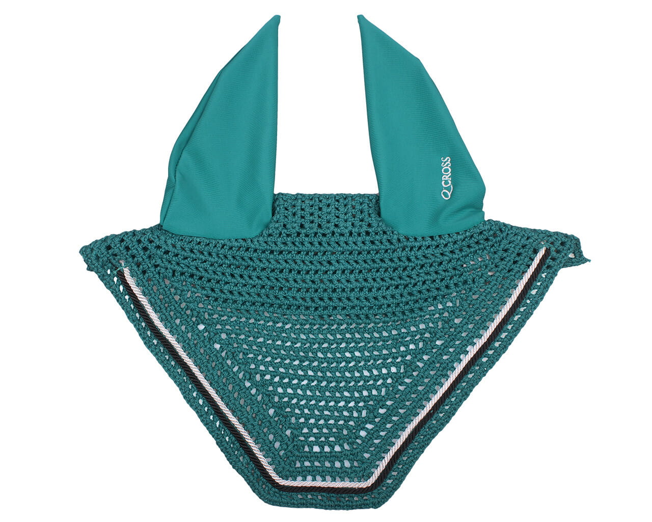 Nauszniki QHP Florence. Niezwykle szykowne. Wykonane z szydełkowanej tkaniny. Uszka wykonane z lycry. Skuteczna ochrona końskich uszu przed kurzem i owadami. Metka z logo QHP na lewym uszku.