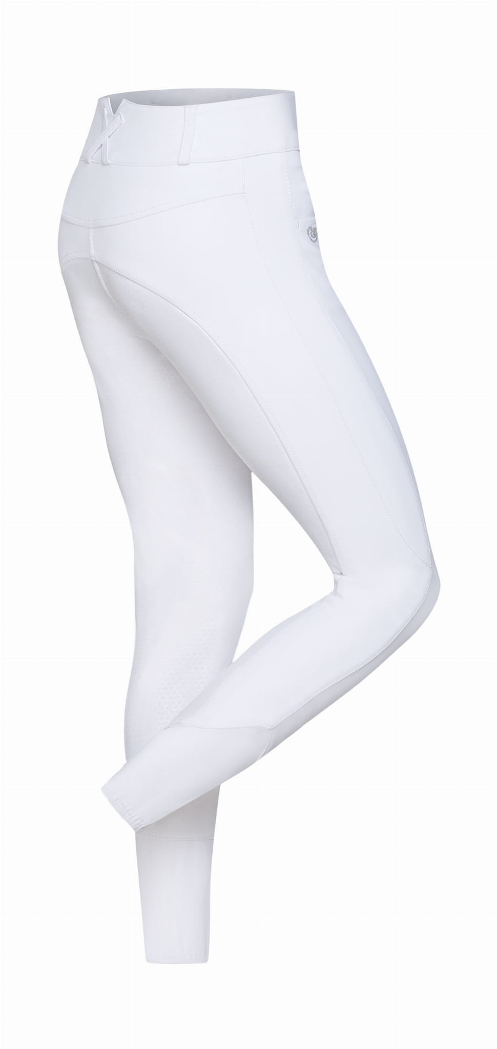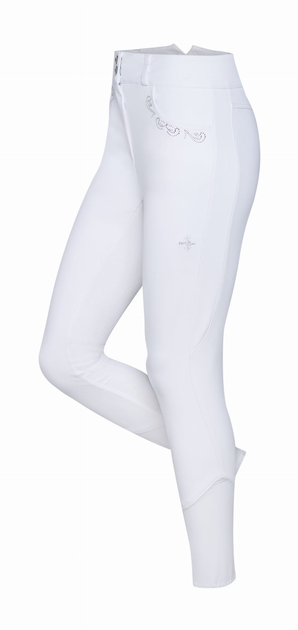 Spodnie wykonane z elastycznego, szybkoschnącego materiału. Pełny lej pokryty antypoślizgowym żelem w technologii COMFISTIC. Przód i tył ozdobione dyskretnym haftem z dżetami. Bryczesy zakończone elastyczną nogawką.