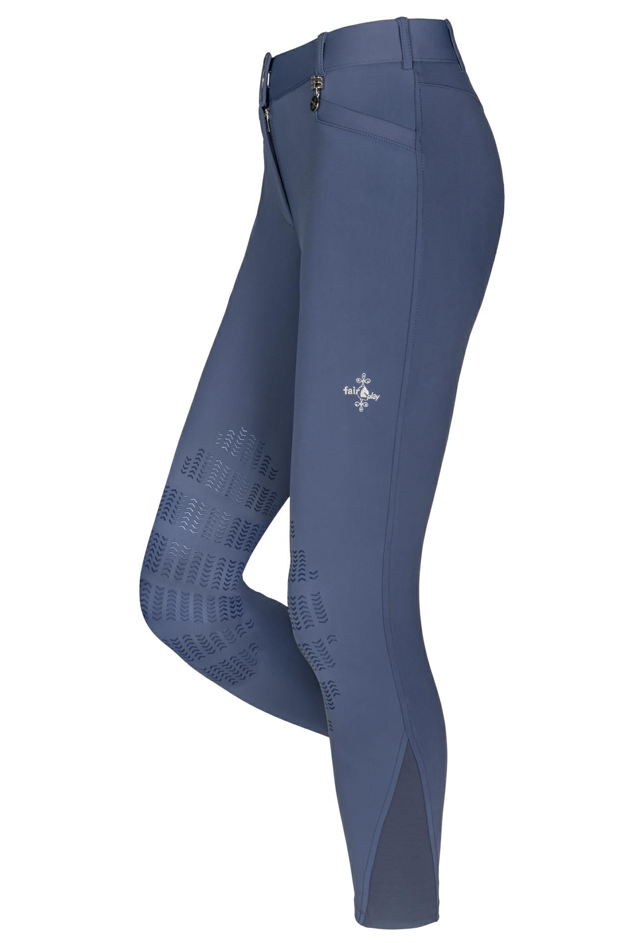 Eleganckie bryczesy Fair Play Johanna ze średnim stanem i klasycznym krojem. Świetnie dopasowane do kształtu sylwetki, rozciągliwy w 4 kierunkach materiał nie krępuje ruchów. Silikonowy lej kolanowy pokryty żelem COMFISTICK zapewnia optymalną przyczepność. Nogawki elastyczne w dolnej części ułatwiają zakładanie. Dwie obszerne przednie kieszenie oraz imitacja tylnych.