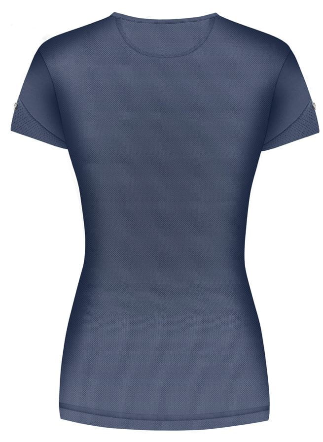 Wykonany z oddychającej, elastycznej i szybkoschnącej dzianiny technicznej. Dzianina drapana od wewnątrz, ciepła i miła w dotyku. Dopasowany do ciała, krój podkreśla kobiecą sylwetkę. Ozdobny nadruk na biuście oraz na lewym rękawie.