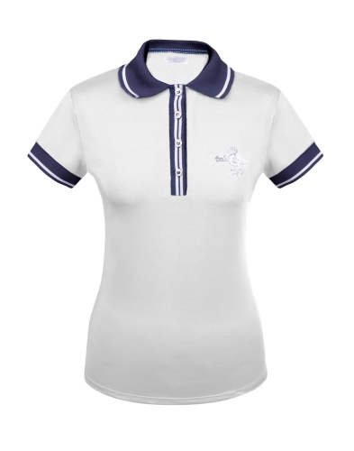 Koszulka polo damska Fair Play Polly - kołnierzyk i wykończenia w kontrastującym kolorze - zapinana na 4 eleganckie guziczki - wykonana z cienkiej dzianiny technicznej - oddychająca - doskonale odprowadza wilgoć na zewnątrz - starannie wykończona - z przodu z logo - materiał: 82% poliester, 18% elastan