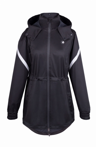 Płaszcz posiada rozpinane poły, a z przodu dwustronnie rozpinany zamek błyskawiczny, co umożliwia zajęcie wygodnej pozycji w siodle oraz regulowaną talię, by lepiej dopasować go do sylwetki.