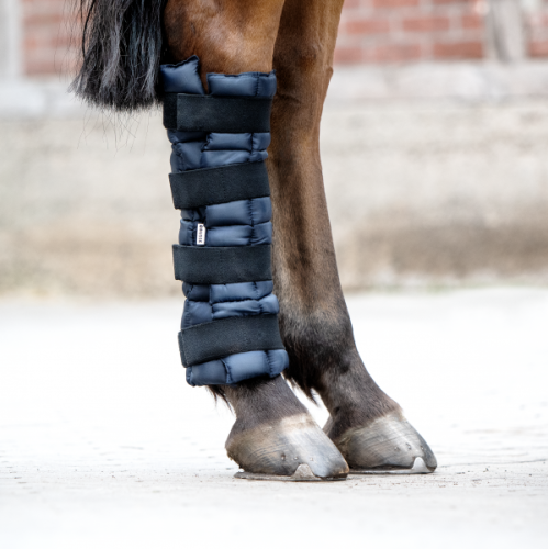 Ochraniacz chłodzący zostawiaj tylko na nodze podczas aplikacji chłodzącej, nie należy zostawiać konia bez opieki.