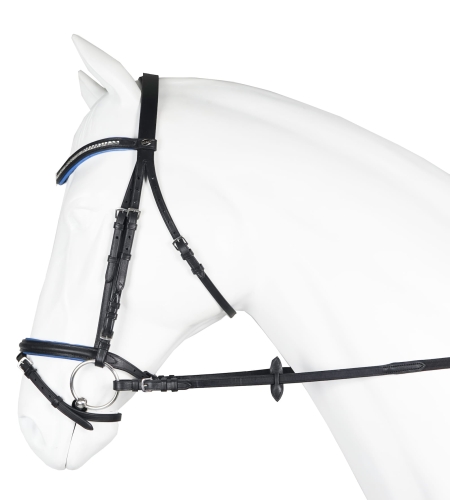 Naczółek oraz nachrapnik podszyto miękką, kolorową skórą zależnie od modelu różową albo kobaltową.
