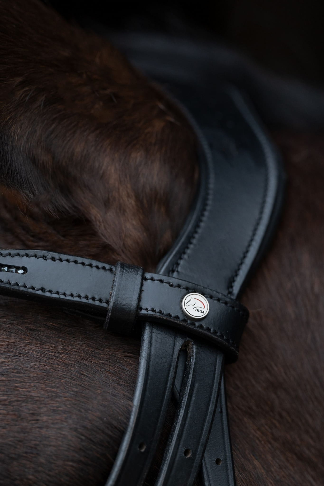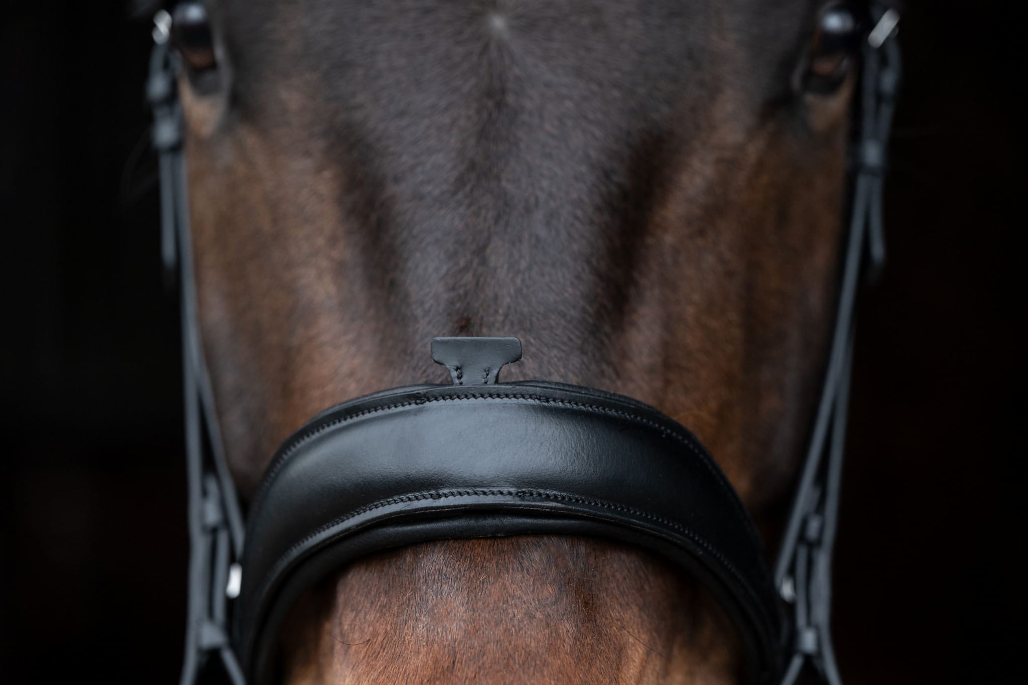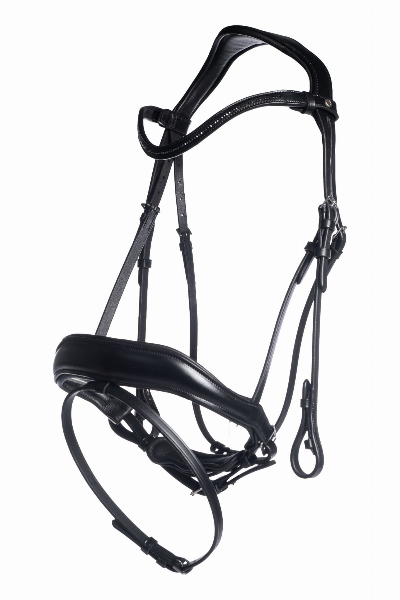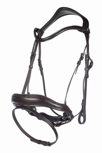 Profilowany, miękko podszyty pasek potyliczny i nachrapnik zapewniają koniowi komfort.