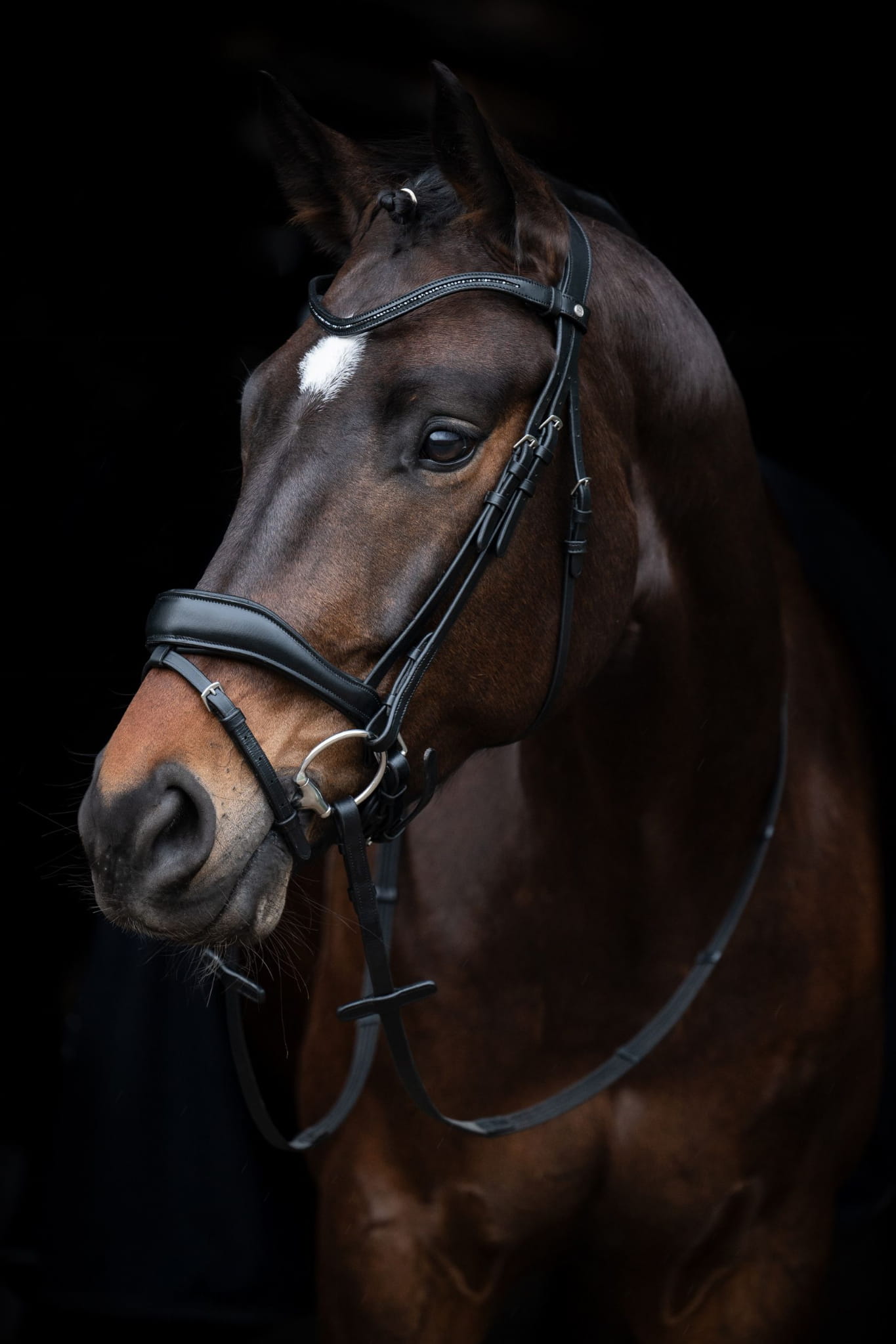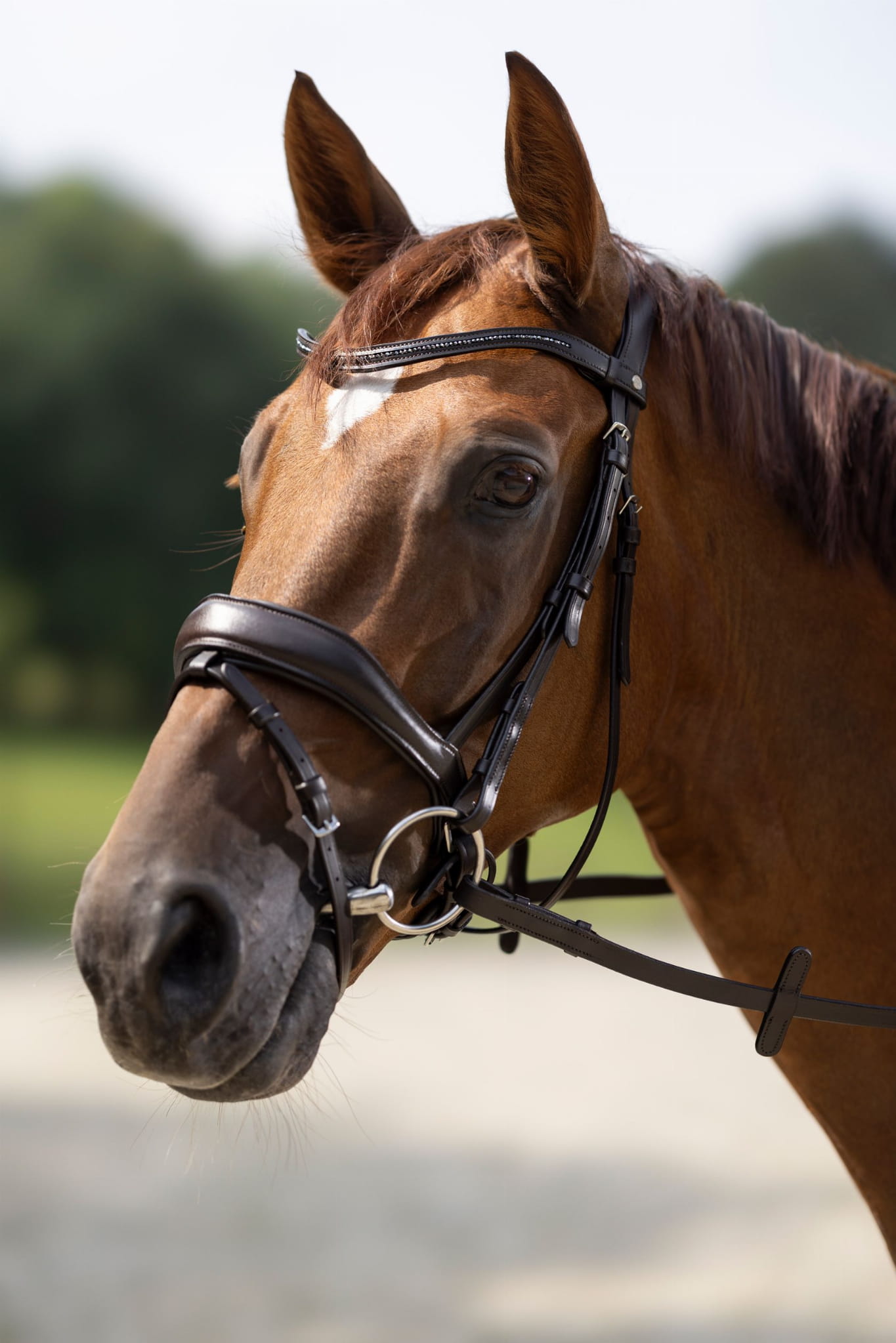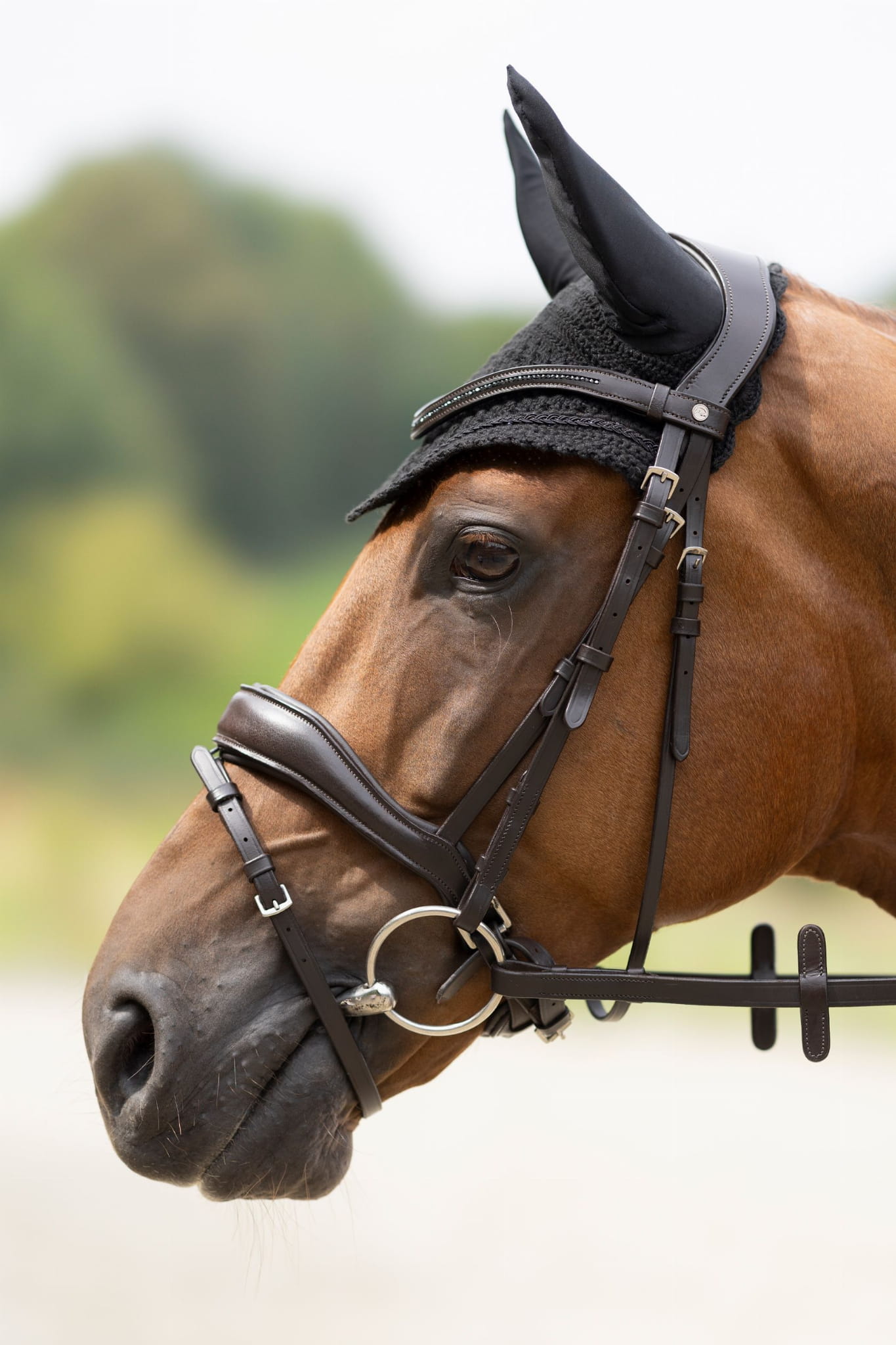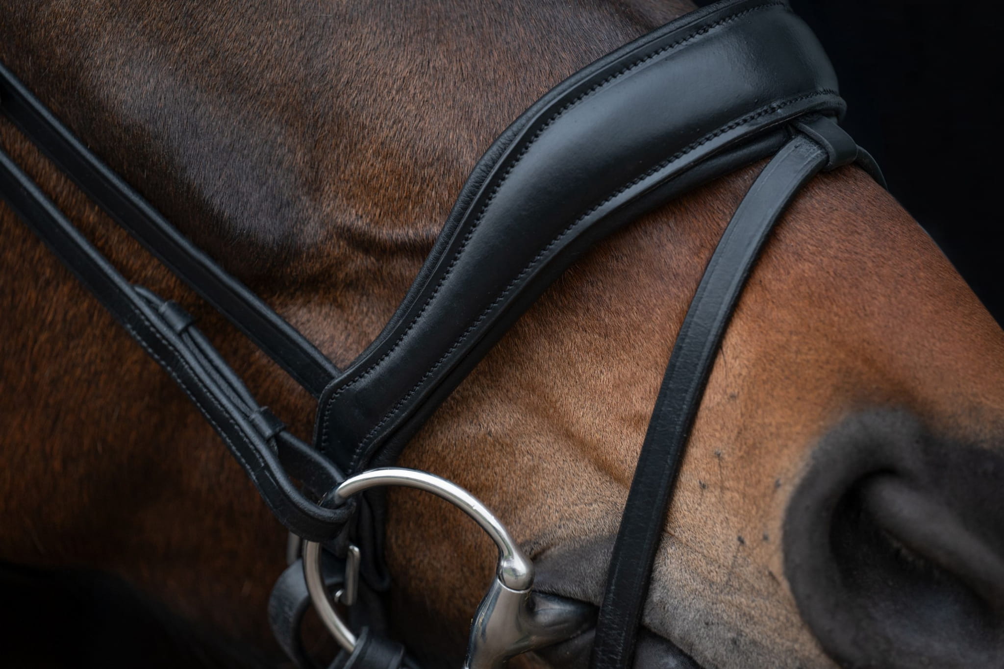Profilowany, miękko podszyty pasek potyliczny i nachrapnik zapewniają koniowi komfort.