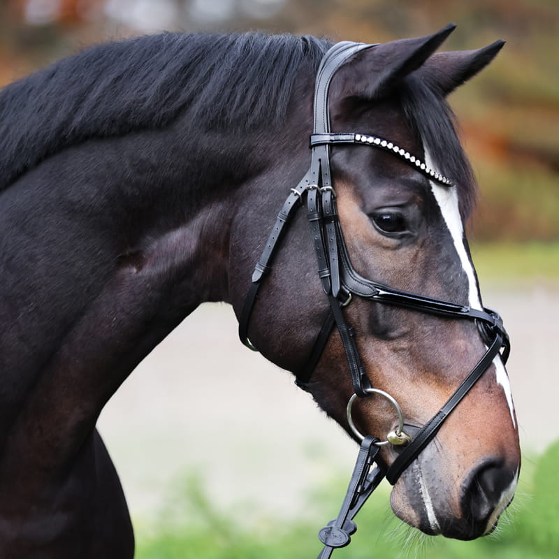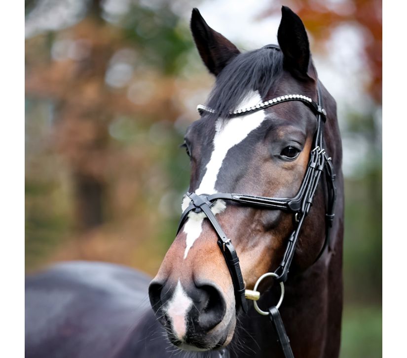 Miękkie podszycie paska potylicznego wplywa na wysoki komfort konia.