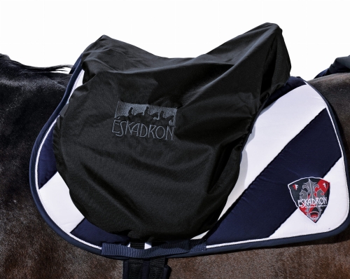 Wykonany z mocnego wytrzymałego materiału. Podszyty miękkim polarem. Chroni siodła przed uszkodzeniem i brudem. Elastyczne obszycie. Ozdobiony haftem z logo Eskadron.