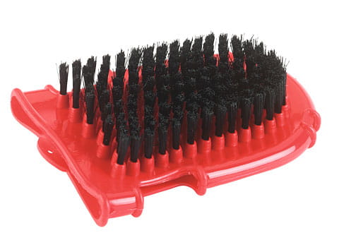 Po jednej stronie sztywne włosie syntetyczne, a po drugiej wypustki.