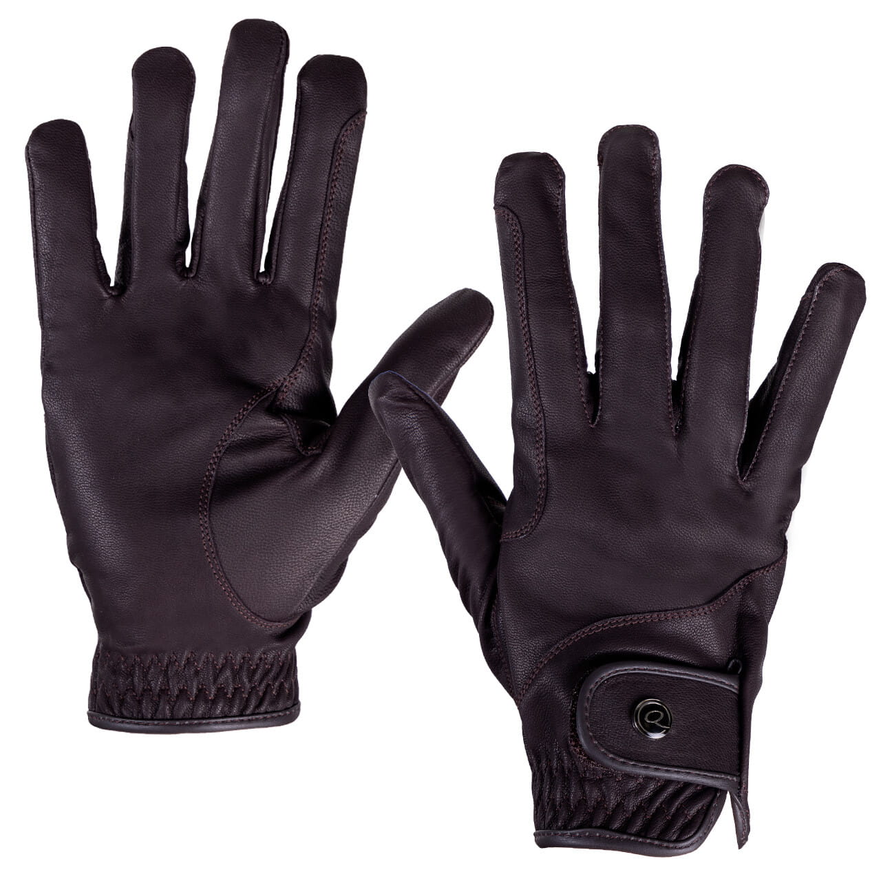 Klasyczne rękawiczki Equestrian Queen Mauritius wykonane z wysokiej jakości, miękkiej skóry naturalnej, dzięki czemu są wytrzymałe i świetnie sprawdzą się na jazdach. Posiadają wzmocnienia w miejscu trzymania wodzy. Perforowany materiał na wierzchniej stronie palców zwiększa przewiewność, a elastyczny ściągacz sprawia, że świetnie dopasują się do dłoni jeźdźca.Zapinane na mocny rzep, zdobiony logo Equestrian Queen. Pozwalają na korzystanie z ekranu dotykowego telefonu w czasie noszenia.