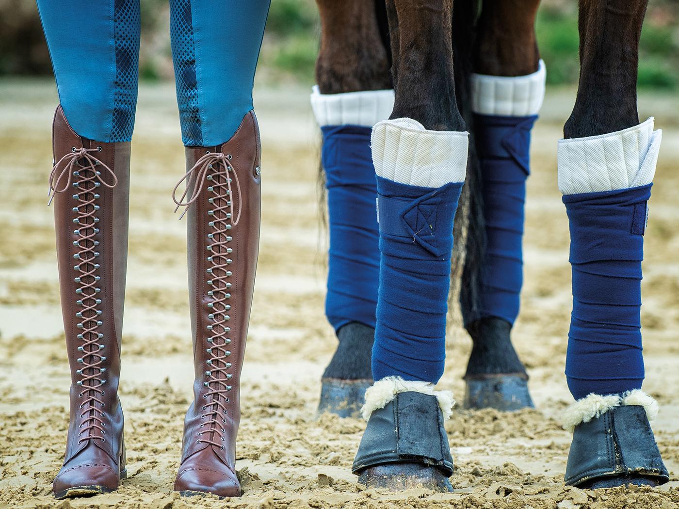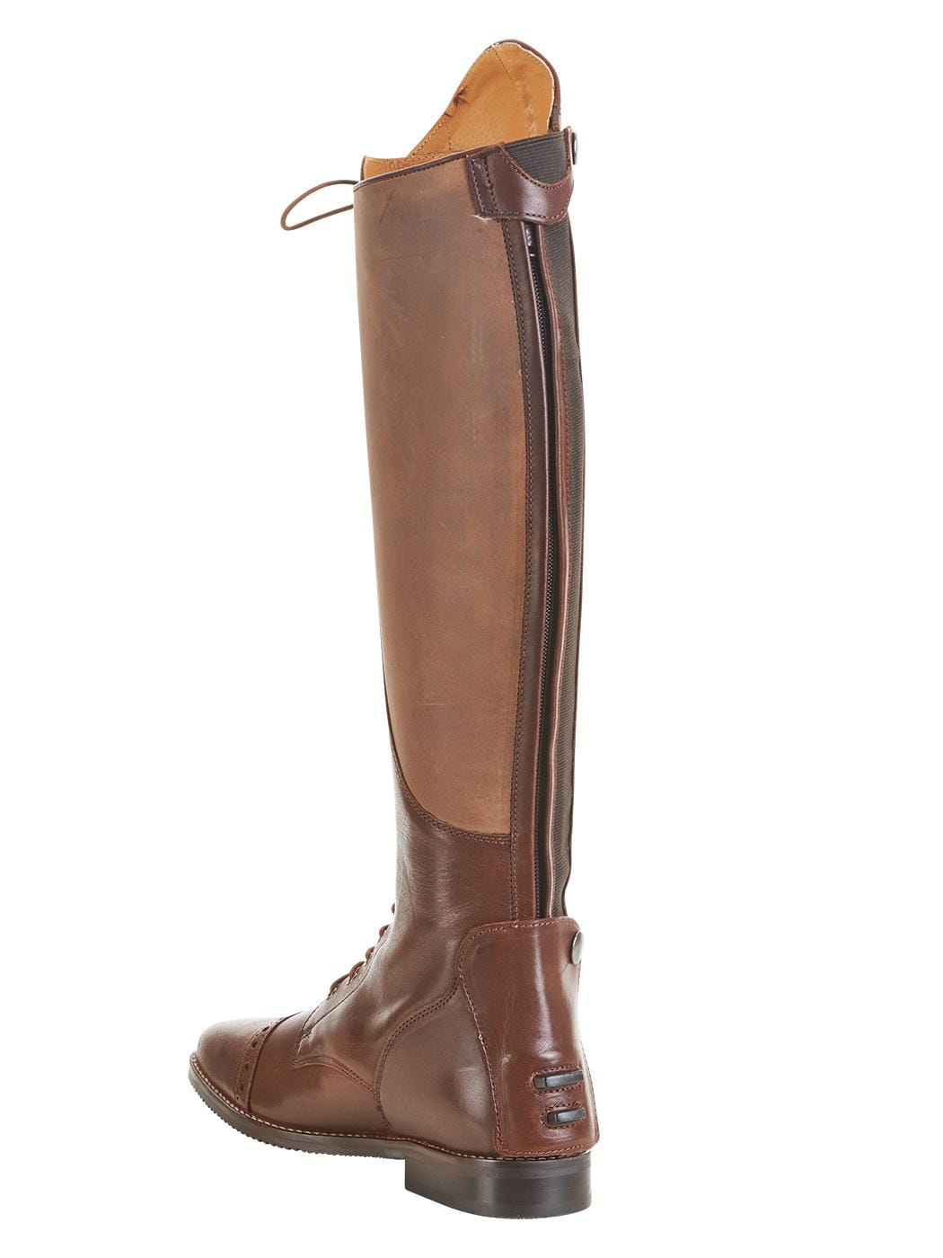 Sznurowane na całej długości, dzięki czemu można optymalnie dopasować je do obwodu łydki.