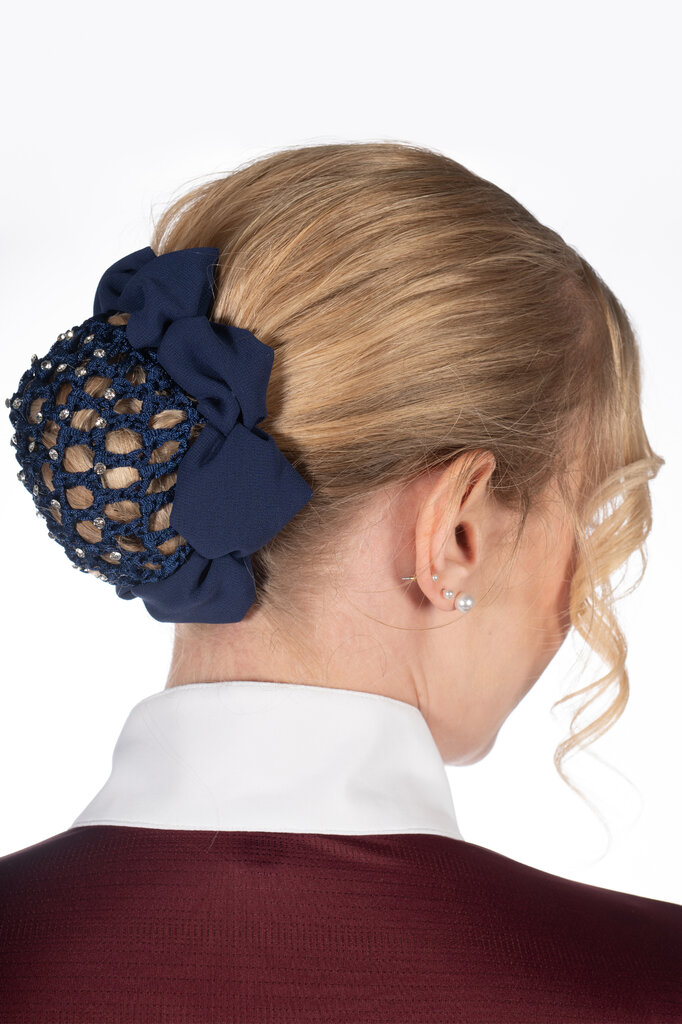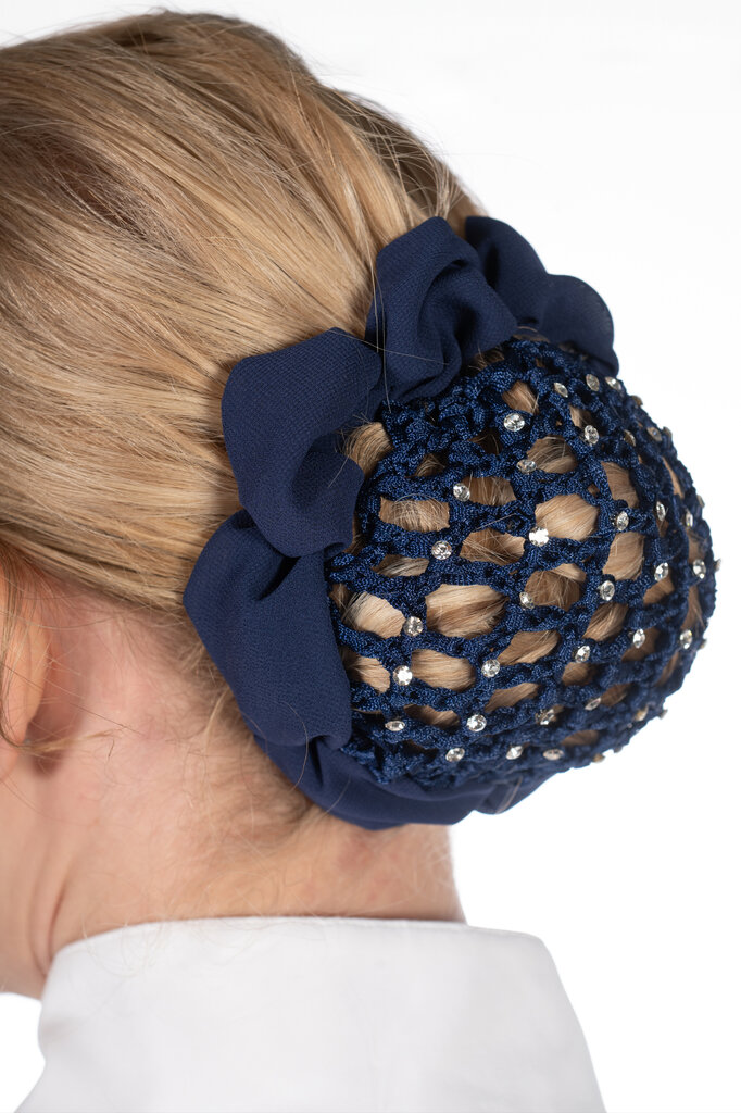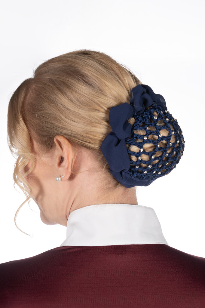 Siatka dla jeźdźca na włosy HKM Crystal dzięki elastycznemu materiałowi i subtelnym detalom, zapewnia wygodę oraz stylowy wygląd podczas zawodów.