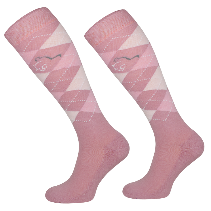 Skarpety jeździeckie COMODO Karo w różowym odcieniu to świetny wybór dla kobiet, które cenią styl, komfort i wytrzymałość w jednym.