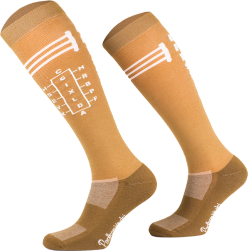 Zabawna skarpety jeździeckich dla koniarzy z poczuciem humoru. Wykonane są z elastycznego materiału. Dobrze wchłaniają pot i odprowadzają go na zewnątrz. Posiadają wzmocnienia, które zapobiegają przed ścieraniem się skarpet na stopie.