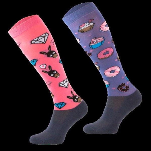 Zabawna skarpety jeździeckich dla koniarzy z poczuciem humoru. Wykonane są z elastycznego materiału. Dobrze wchłaniają pot i odprowadzają go na zewnątrz. Posiadają wzmocnienia, które zapobiegają przed ścieraniem się skarpet na stopie.