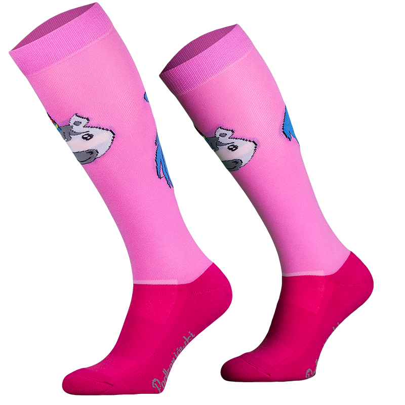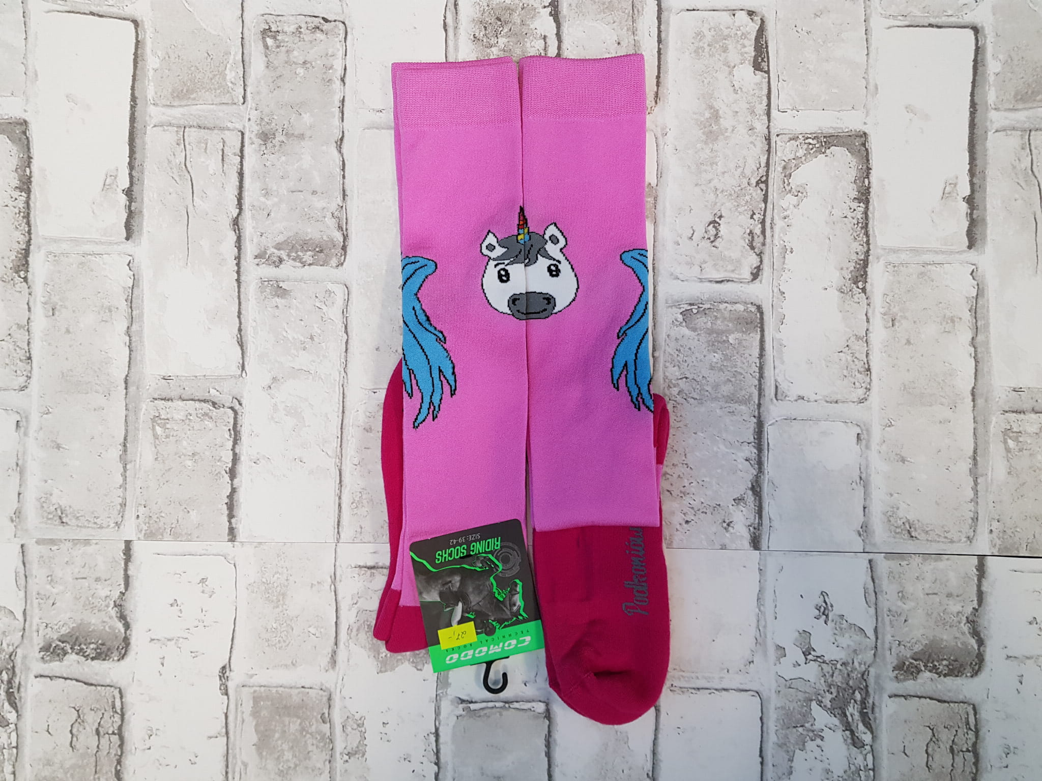 Zabawna skarpety jeździeckich dla koniarzy z poczuciem humoru. Wykonane są z elastycznego materiału. Dobrze wchłaniają pot i odprowadzają go na zewnątrz. Posiadają wzmocnienia, które zapobiegają przed ścieraniem się skarpet na stopie.