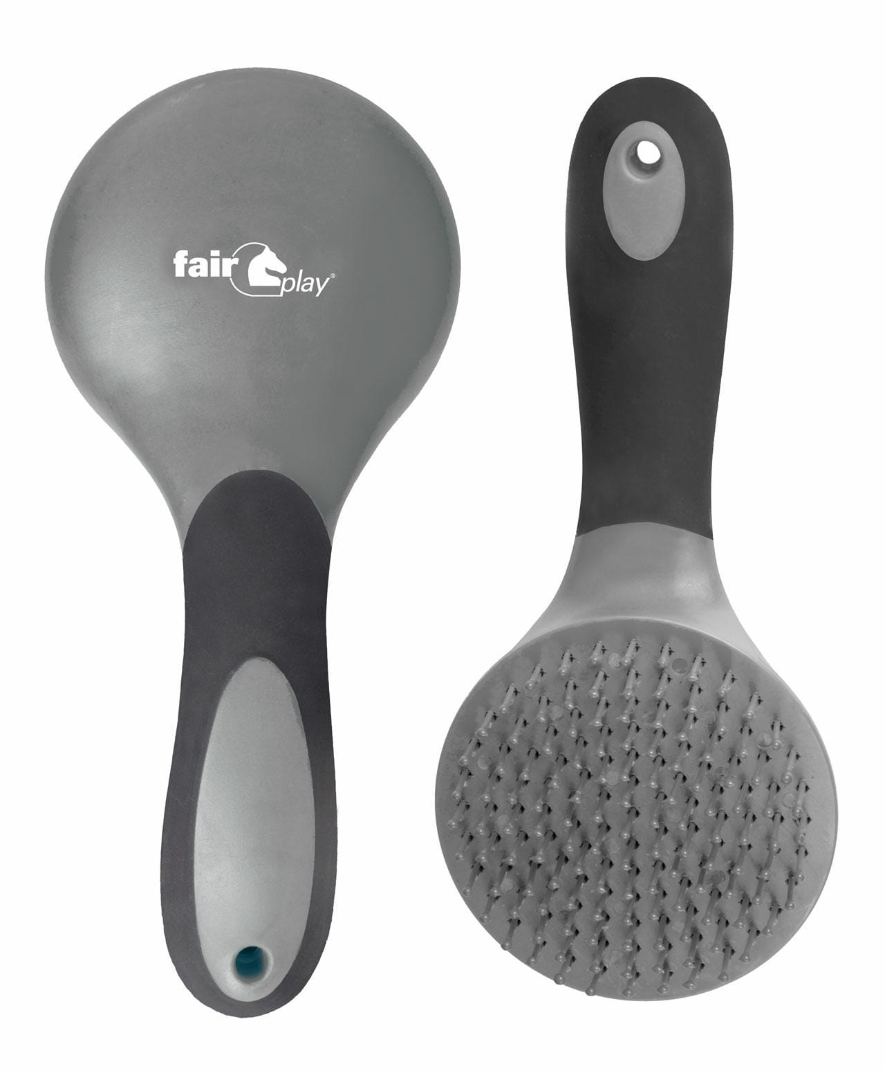Elegancka szczotka do czyszczenia głowy konia Fair Play Grand. Wykończona imitacją skóry z wytłoczonym logo Fair Play. Miękkie, antypoślizgowe obrzeże.