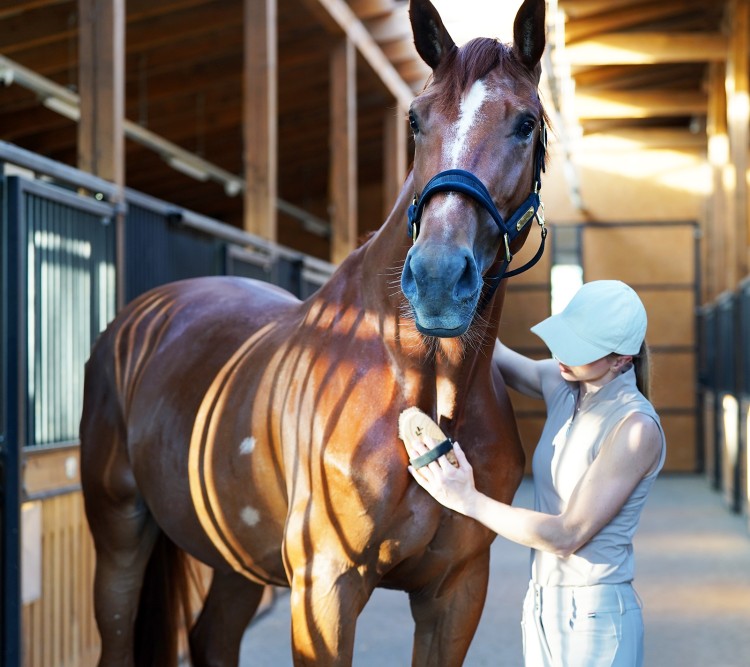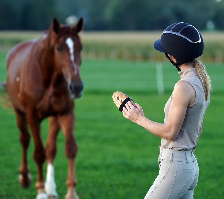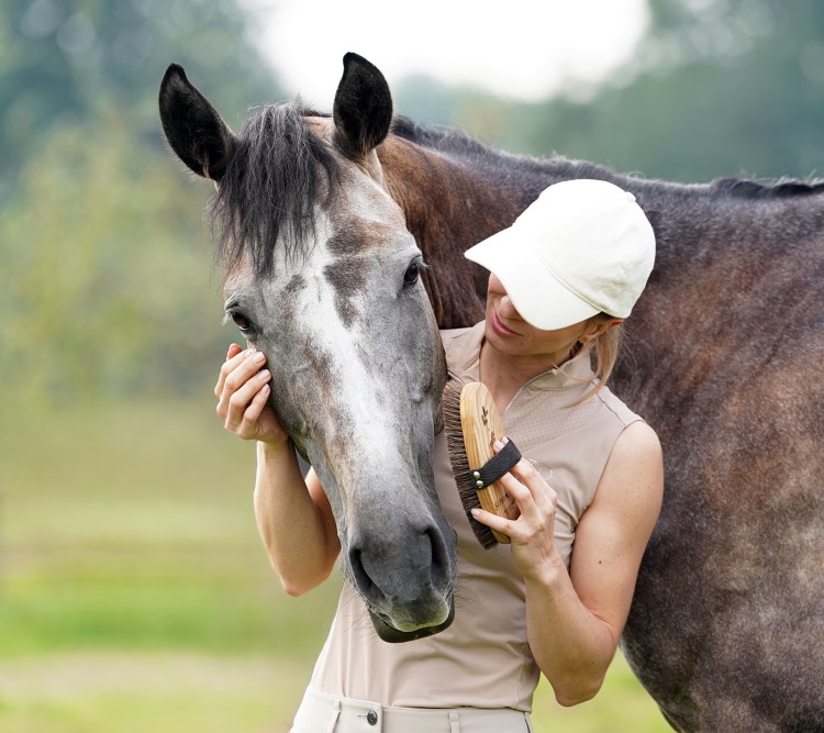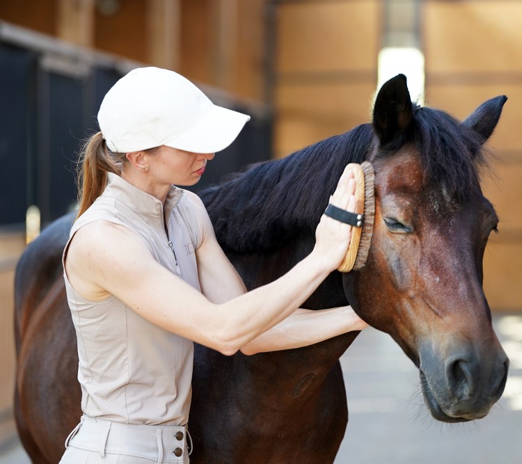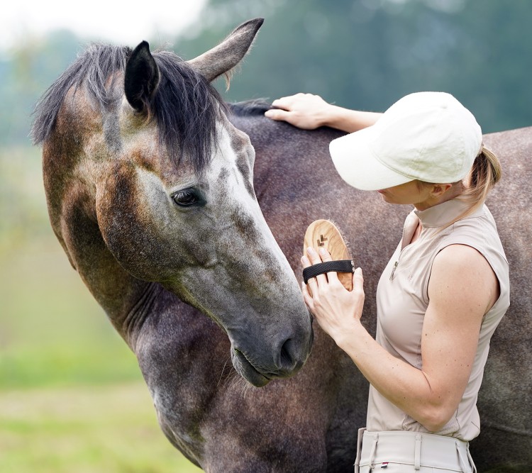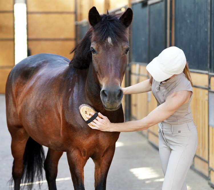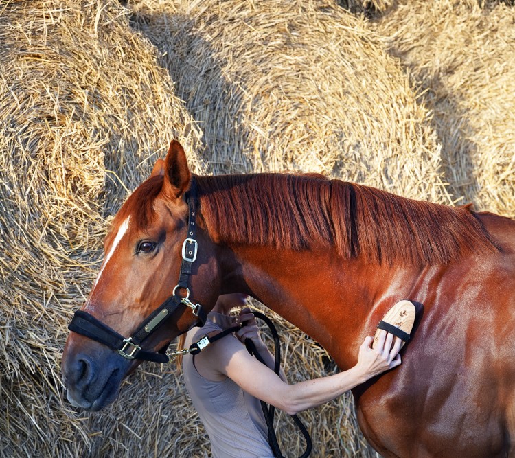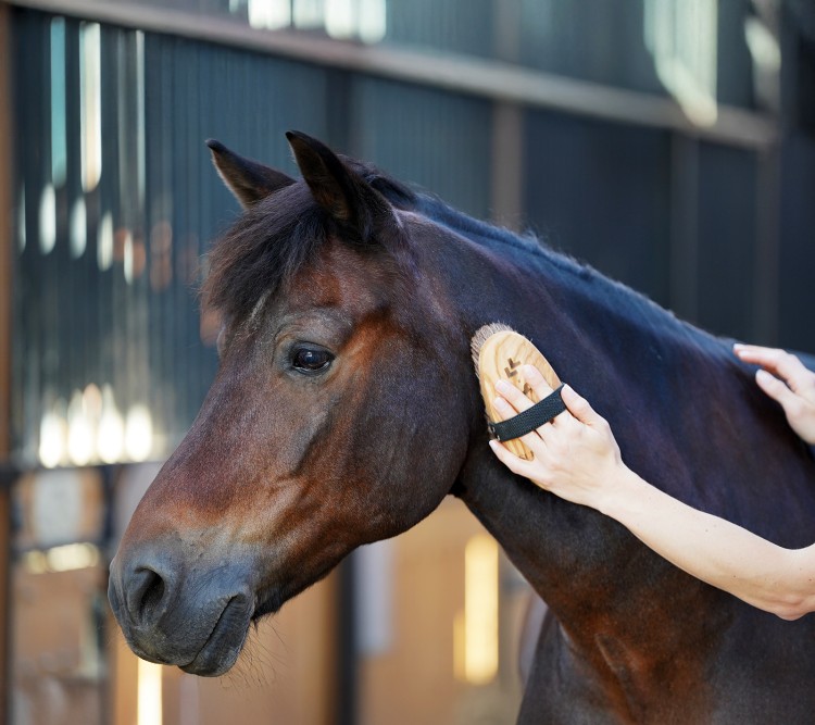 Relaksujący masaż skóry – poprawia krążenie i samopoczucie konia.