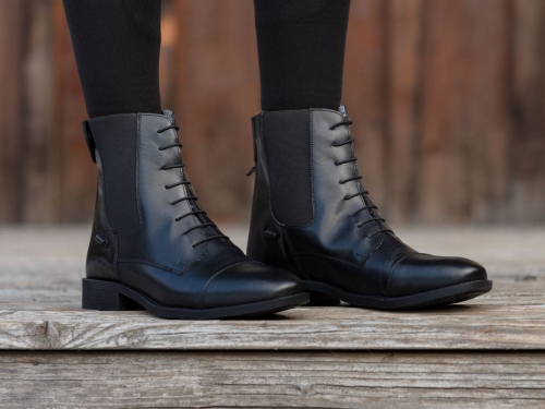 Wykonane z olejowanej i bardzo grubej skóry. Polecane zarówno do jazdy jak i pracy w stajni. Podeszwa antypoślizgowa, gruba. Elastyczne wstawki ułatwiają zakładanie i zdejmowanie butów.